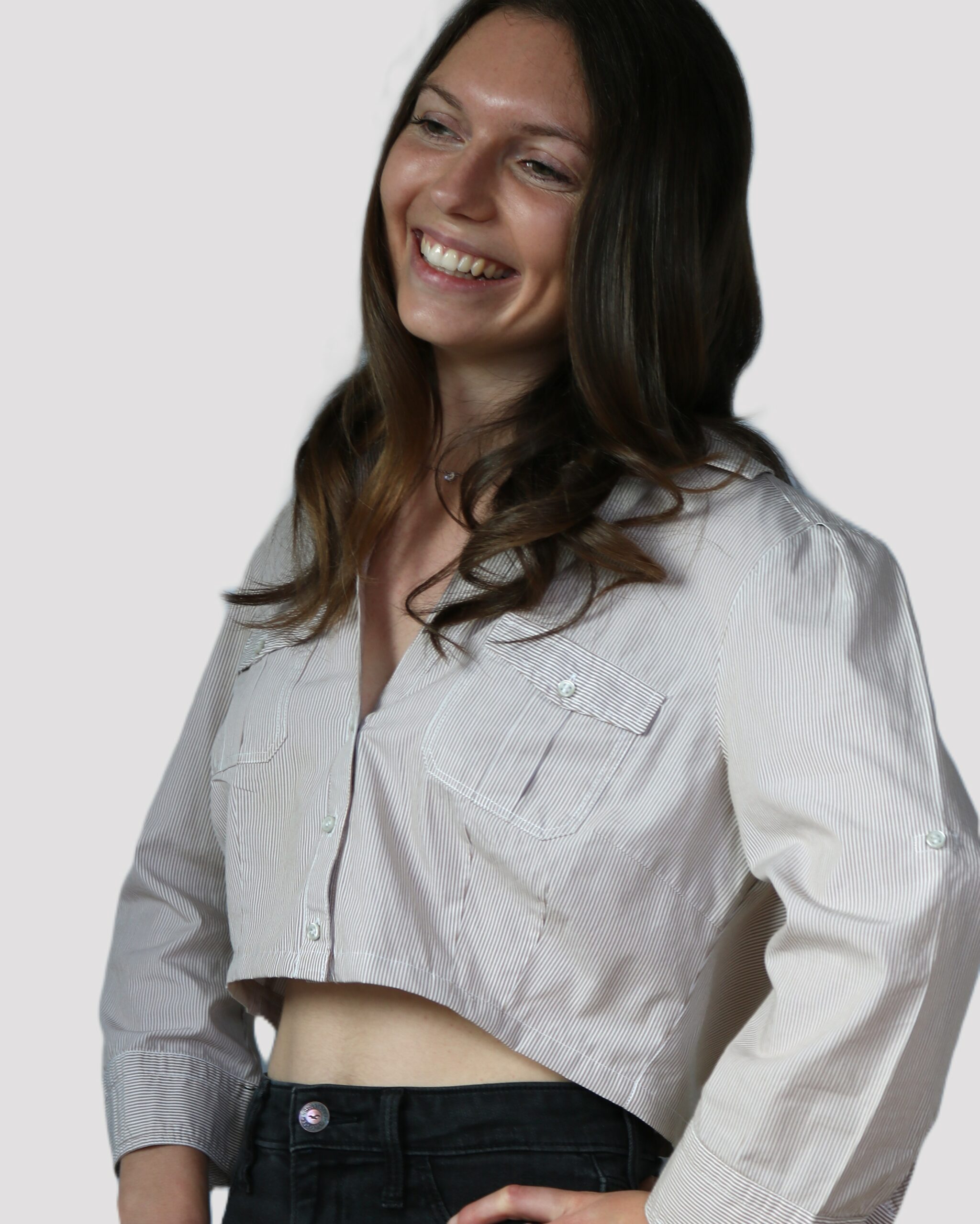 Idéale pour la mi-saison ou l’été, cette chemise crop top casual chic éclairera aussi vos tenues hivernales, portée sur un top léger ou un pull près du corps.