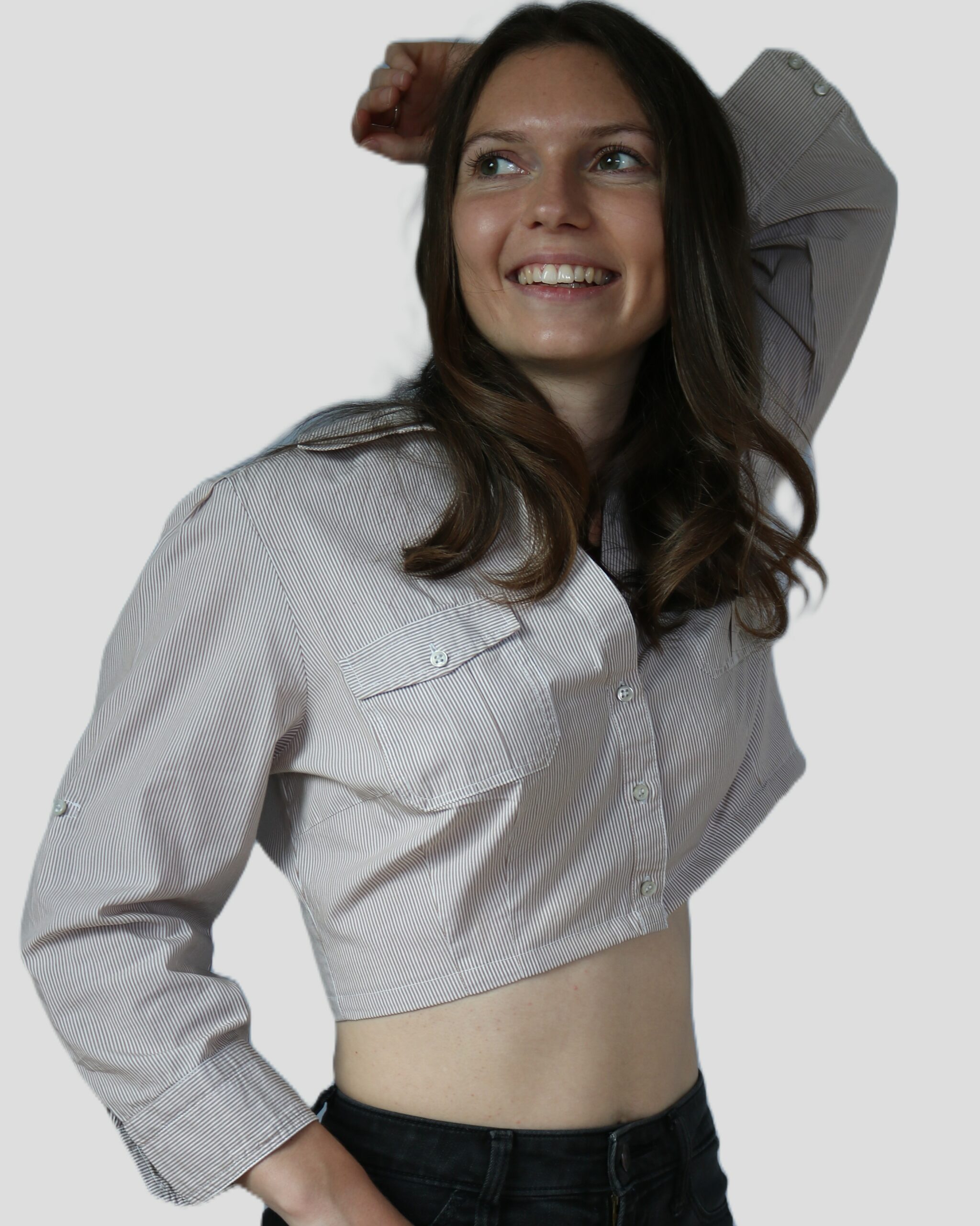 De style moderne et raffiné, cette chemise crop top femme apporte une allure naturellement chic et sans effort.