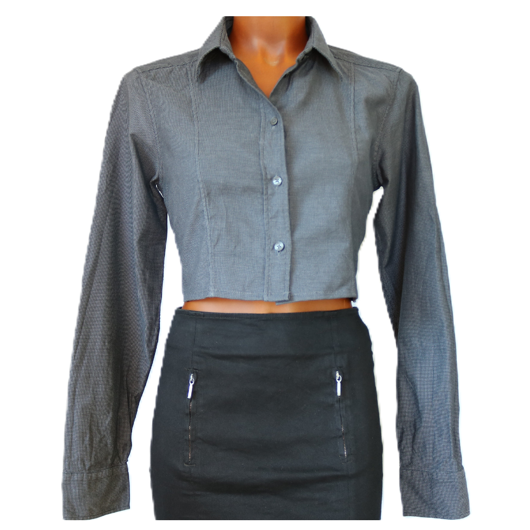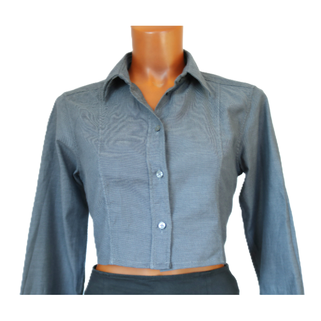 Son dos entièrement ouvert dévoile la silhouette avec subtilité et féminité, créant un contraste élégant entre la rigueur de la chemise et la sensualité du dos nu. Chaque modèle est unique, transformé à la main, ce qui en fait une pièce exclusive que vous ne trouverez nulle part ailleurs.